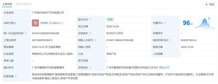 粤进深 赵盼盼绿城拿下番禺黄沙岛地块第二天,项目公司也注册成立——广州绿兴房地产开发有限公司。