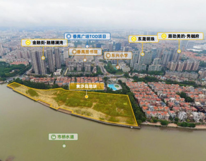 地块位于市桥水道北岸,紧邻黄沙岛花园别墅区,周边配套一应俱全。